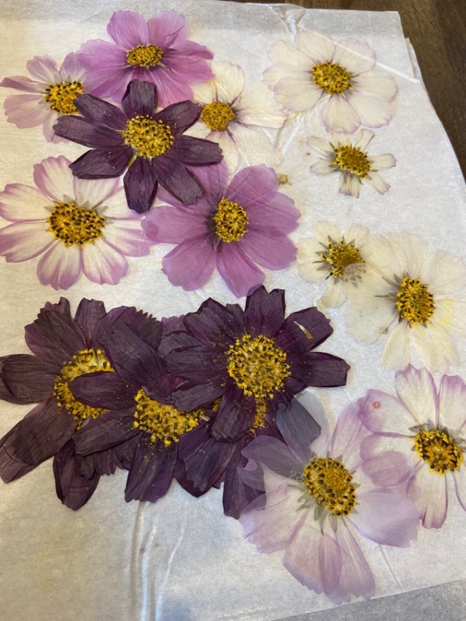 코스모스를 사계절 내내 볼 수 있는 또 다른 방법이 있습니다. 제철에 신선한 코스모스를 저렴하게 구입해 압화로 만드는 것입니다. 압화는 꽃과 잎을 눌러 건조시킨 것으로 싱싱할 때 누를수록 고유의 색을 그대로 유지합니다.