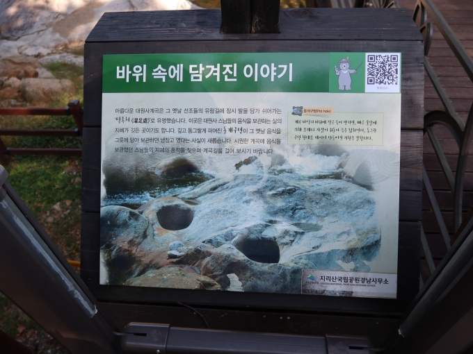 한 손으로 즐기는 셀프 탐방 프로그램은 대원사 계곡길 내 주요 해설지점 7개소에 부착된 QR코드를 찍으면 해당 지점의 해설이 담긴 영상을 볼 수 있다. 스마트폰만 있으면 자연환경해설사 없이 고품격 해설 서비스를 받을 수 있다.