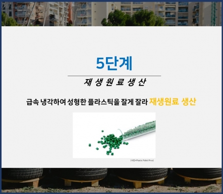 급속 냉각하여 성형한 플라스틱을 잘게 잘라 재생원료 생산