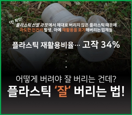 플라스틱 선별 과정 에서 제대로 버리지 않은 플라스틱 때문에 과도한 인건비 발생하고 이를 부담하기 힘든 업체들은 아예 재활용을 포기해버린다고 한다.