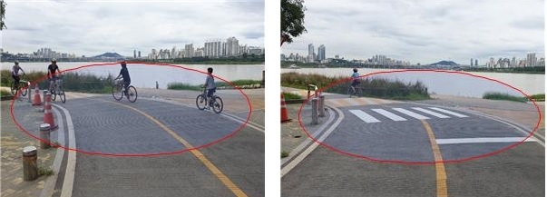 아울러 한강공원에서 자전거를 타는 사람들이 꾸준히 늘어남에 따라, 이로 인한 안전사고를 줄이기 위해 보행로와 자전거도로를 단선에서 복선으로 바꿨다. 위험구간은 안전봉도 설치했다.