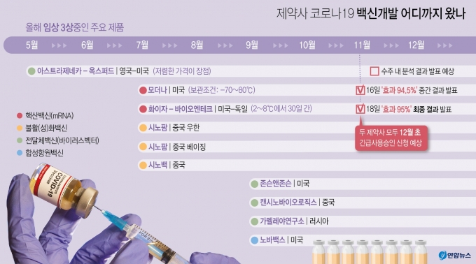 화이자와 모더나에서 개발중인 코로나19 백신이 연내 시판될 가능성이 높아졌다.