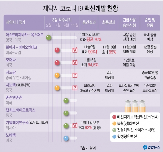 ◇백신 3종 12월~1월 접종시작···국산도 '임상중'