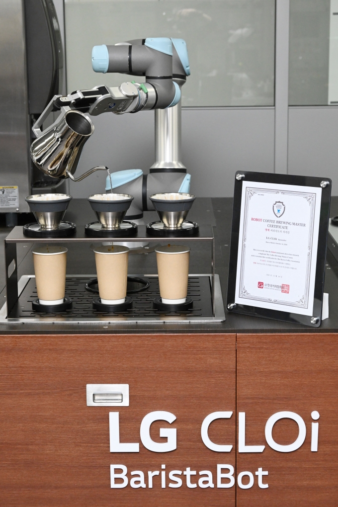 LG전자는 'LG 클로이 바리스타봇'(LG CLOi BaristaBot)이 사단법인 한국커피협회로부터 국내 최초로 '로봇 브루잉 마스터' 자격증을 획득했다고 20일 밝혔다.