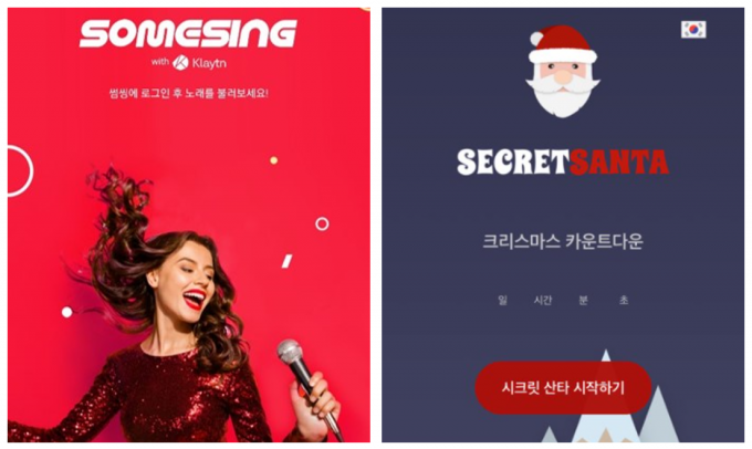 함께 모일 수 없는 가족이나 친구끼리 이 앱을 이용해 마니또 게임을 진행한다면 연말의 즐거운 이벤트가 될 것으로 보인다. ▲ 소셜노래방 앱 '썸씽'과 온라인 마니또 앱 '시크릿 산타'의 접속 화면
