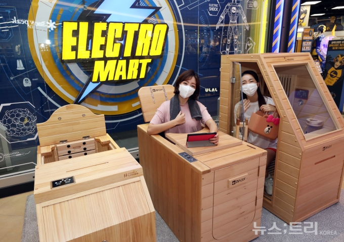 회사측은 코로나로 인해 사우나나 스파 방문이 어려운 상황에서 집에서라도 사우나, 찜질 등을 즐기고자 하는 수요를 파악하고 홈사우나 상품 판매에 나섰다고 설명했다. 이마트는 홈사우나 기계 외에도 반신욕과 좌훈, 허리 찜질까지 가능한 '다온 반신욕기 프리미엄형(99만원)', '다온 반신욕기 일반형(79만원)'도 함께 판매에 나선다.