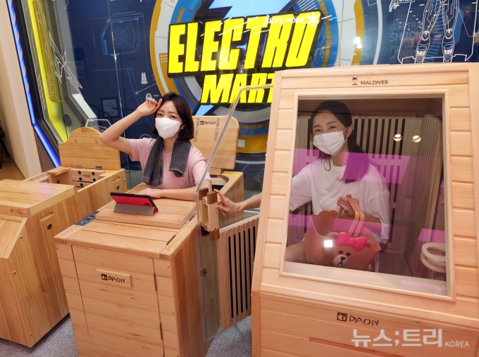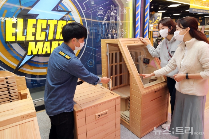 이마트는 일렉트로마트 위례, 은평, 금정점과 이마트 의정부점, 경산점 5개 매장에서 '다온 이동식 전신 홈사우나(169만원)'를 판매한다고 27일 밝혔다. 설 명절 전인 2월초 15개 매장으로 판매를 확대할 방침이며, 추후에도 판매 점포를 늘려갈 예정이다.