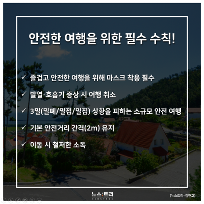 선정된 여행지들은 모두 방문객 출입과 동선을 고려한 생활속 거리두기를 철저히 준수하고, 환기 및 소독, 방역관리자 배치 등 모든 공간과 시설들을 방역시스템에 맞춰 철저히 관리하게 된다.