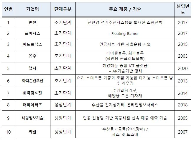 해수부는 이들 기업에 대해 전문가 자문, 투자유치 등을 위한 지원 프로그램을 연계해주고 간담회 개최 등으로 사업 진행을 도와줄 예정이다.