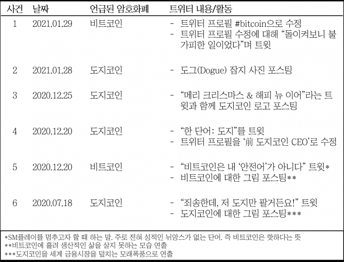 이를 두고 파이낸셜타임즈를 비롯한 해외 언론은 '머스크 효과'라고 부르고 있다. 독일 블록체인연구소 공동창립자 레나트 안트는 '일론 머스크의 트위터 활동이 암호화폐 시장을 어떻게 움직이는가'를 주제로 논문까지 등재한 상황이다.