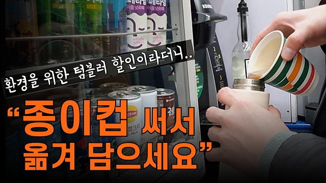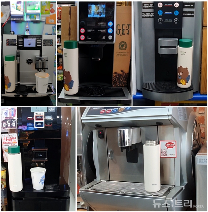 커피전문점들은 일회용 쓰레기 줄이기 차원에서 고객이 가져온 텀블러에 커피를 담아주지만, 편의점들은 대체로 일회용 컵을 사용해야만 하는 것으로 드러났다. 텀블러 사용을 장려하기 위해 할인을 하는 편의점들도 있지만, 커피기계 노즐 높이가 낮아 텀블러를 끼워 넣을 수 없어 '할인' 행사를 무색하게 만들고 있다.