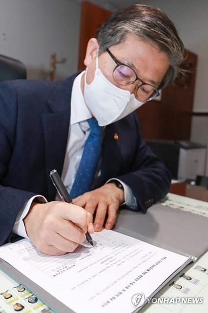▲변창흠 국토부 장관이 부동산 거래내역 전수조사 개인정보 동의서를 작성하고 있다