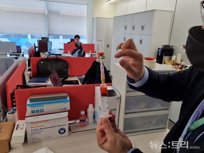 그런데도 국내 대부분의 병원들이 이 장치를 이용하지 않는 것은 의료보험급여에 포함돼 있지 않기 때문이라는 게 박 대표의 설명이다. 박정건 대표는 "코로나19 백신을 접종할 때도 폐쇄형 약물전달장치를 이용하면 백신을 최대한 아낄 수 있다"면서 "지금은 간호사의 숙련도에 따라 1병당 7명까지 접종할 수 있다고 하는데 이 장치를 이용하면 숙련 안된 간호사도 7명분의 백신을 추출할 수 있다"고 말했다.