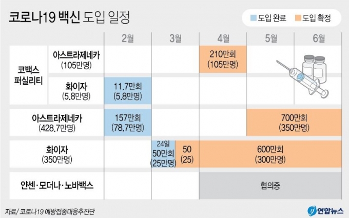 한편 정부가 현재까지 확보한 백신은 총 7900만명분이다. 코백스를 통해 1000만명분을 확보했고, 개별 제약사와는 6900만명분을 계약했다. 제약사별 물량은 아스트라제네카 1000만명분, 화이자 1300만명분, 얀센 600만명분, 모더나 2000만명분, 노바백스 2000만명분이다.