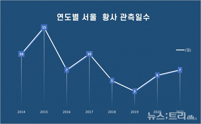 우리나라도 비슷한 양상을 보이는 것으로 나타났다. 기상청의 서울지역 봄철 황사 관측일수에 따르면 2015년 15일로 정점을 찍고 2017년 10일 2018년 5일 2019년 3일로 감소하는 양상을 보인다.