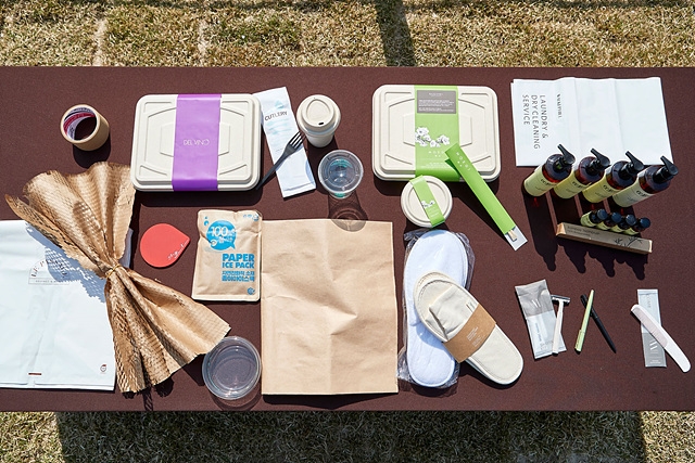 워커힐은 이미 올해 초부터 플라스틱 컵을 유리잔으로, 종이 잔받침은 세척해 재사용할 수 있는 실리콘 소재로 교체했다. 또 짚을 원료로 하는 생분해성 용기를 도입해 일부 식음료에 한해 포장 서비스에 활용하고 있다. 객실에는 플라스틱 사용이 많은 소형 어메니티 대신 대용량 디스펜서를 도입하고, 생분해성 슬리퍼와 비닐 포장재를 사용한다. 브로셔나 팜플렛 등 인쇄물을 줄이기 위해 휴대폰 앱도 개발했다.