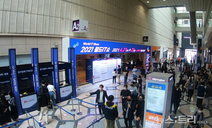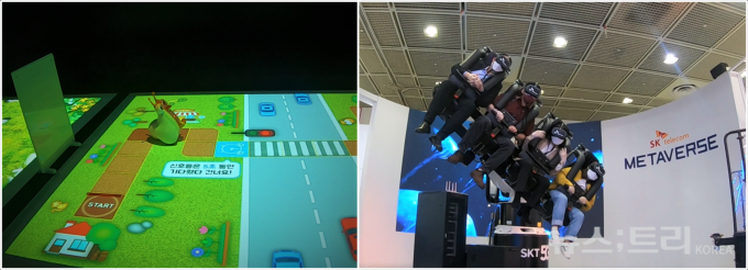 21일~23일까지 서울 삼성동 코엑스에서 열린 ICT 전시회 '월드IT쇼(WIS) 2021'에서도 최고 스타는 '메타버스'였다. SK텔레콤이 전시한 '5G 메타버스 시네마'에는 코로나19 상황이 무색하게 체험을 원하는 관람객들이 몰리면서 체험까지 오랜시간을 기다려야 했다. 좌석에 앉아 가상현실(VR) 기기를 착용하자 코엑스 전시관은 사라지고 주변이 해저로 바뀌었다. 산호나 해파리, 물고기 등이 눈앞에 있는 것처럼 실감났다. 줄거리는 체험자가 물고기가 돼 어항에서 바다로 도망치는 내용으로 눈앞에 펼쳐지는 3D 가상세계와 흔들리는 좌석 등으로 실제 상황처럼 느껴졌다. 1시간 넘게 대기한 것이 아깝지 않았다.