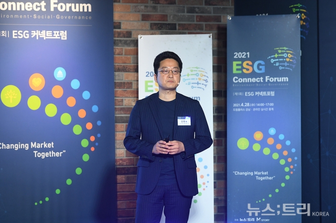 28일 뉴스트리 창간 기념으로 서울 강남 드림플러스에 열린 '2021 제1회 ESG 커넥트포럼'에 참석한 김종호 SK텔레콤 ESG혁신그룹 전략팀장은 SK텔레콤이 정보통신기술(ICT)를 어떻게 ESG 경영에 활용하고 있는지에 대해 소개했다.