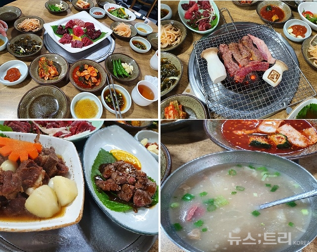 맨 처음 나오는 음식은 말고기 모듬회. 종류가 다양하다. 간, 안심, 등심, 육사시미, 염통, 지라, 차돌박이, 울대가 모두 모여 선홍빛 자태를 뽐낸다. 육회는 엉덩이 살로 담백함을 자랑한다. 갈비찜도 기름기가 없어 담백함을 맛볼 수 있다. 스테이크는 부드러움의 극치를 이룬다. 힘들여 씹을 필요가 없다. 숯불구이는 등심과 갈비가 제공된다. 말고기 고유의 맛을 즐길 수 있다. 고기의 맛을 음미한 뒤에는 곰탕이 나온다. 곰탕은 국물이 진하다. 손님에게 포만감을 주기에 충분하다. 코스요리의 양이 많다. 웬만한 사람은 남기게 된다. 주저하지 마라. 종업원에게 과감하게 말해라. 포장해 달라고. 종업원이 친절하게 웃음을 짓는다. 정성스럽게 포장해준다.