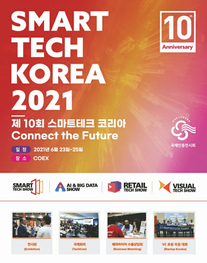 올해로 10주년을 맞이하는 스마트테크 코리아는 '미래를 연결하다'라는 주제로 진행되며 △스마트 기술 산업전 △지능정보 산업전 △디지털 유통 산업전 △비주얼 테크쇼로 구성해 미래 핵심 스마트 기술과 산업 트렌드를 소개한다.
