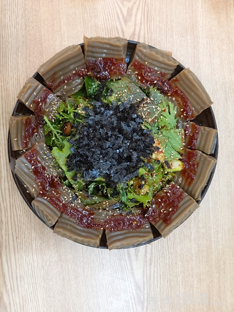너븐나루의 대표음식은 도토리묵과 전이다. 막걸리 안주에 제격이다. 도토리묵은 주인이 직접 만든다. 묵을 쑤는데 오랜시간이 걸린다. 주인의 정성이 가득 들어간다. 도토리묵을 공장에서 구입하는 것과 차이가 많이 난다. 도토리 가루는 중국산이다. 국내산은 아예 구할 수가 없다. 주인이 안타깝게 생각하는 부분이다. 한국에서 도토리 채취는 법으로 금지돼 있다. 도토리묵이 나오면 손님이 탄성을 지른다. 예술품 마냥 우아한 자태를 뽐낸다. 음식을 먹기 전에 대부분 사진을 찍는다. 보기 좋은 음식이 먹기도 좋다는 것을 증명해준다.