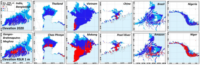 네덜란드 수자원연구원 델타레스(Deltares)의 알료샤 호이어 박사 연구팀은 현재 해발고도 2m 이내 지역에 거주하는 인구는 2억6700만명으로, 2100년에 해수면이 1m 상승하면 해발고도 2m 이내 지역에 거주하는 인구가 4억1000만명으로 늘어날 것으로 전망했다.