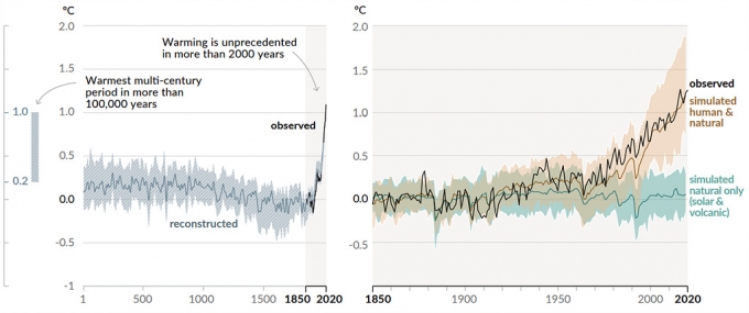 기후변화에 관한 정부간 협의체(IPCC)는 9일(현지시간) 이같은 내용이 담긴 'IPCC 제6차 평가보고서(AR6) 제1실무그룹 보고서'를 공개했다. AR6는 오는 11월 영국에서 열리는 제26차 유엔기후변화협약 당사국 총회(COP26)와 2023년 시행할 첫 파리협정 이행 점검에서 과학적 근거로 사용될 예정이다.
