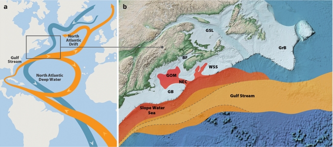 이번 보고서의 책임 저자이자 코넬대학교 지구대기과학과 찰스 그린 명예 교수는 "기온이 상승하면서 '대서양 자오선 역전 순환류'(Atlantic Meridional overturning circulation, AMOC의 유속이 느려졌다. 이 때문에 멕시코만류가 북쪽으로 올라가면서 메인만에 따뜻하고 염도가 높은 해수가 들어왔고, 고래들이 기존 서식지를 버릴 수밖에 없었던 것으로 보인다"고 말했다.
