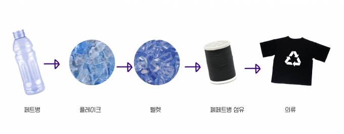수거한 페트병은 라벨과 본드 등을 제거하고 깨끗하게 세척한 후 녹인다. 이 과정을 플레이크라고 한다. 플레이크에서 만들어진 작은 알갱이를 '펠릿'이라고 한다. 이 펠릿에서 옷을 만드는 실을 뽑아내는 것이다. 폐페트병으로 옷을 만드는 데 성공하려면 질좋은 원사가 관건이다.