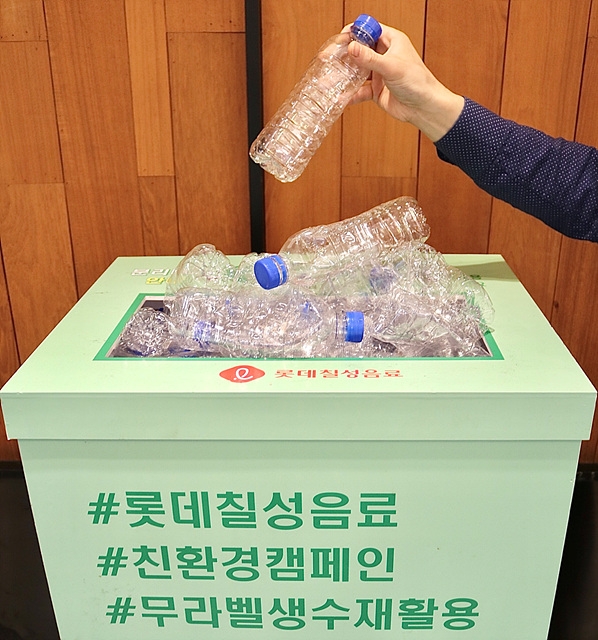 롯데칠성음료는 올초 내놓은 무라벨 '아이시스ECO' 제품을 올 7월부터 회수하는 '리그린(Re:Green) 자원순환 캠페인'을 전개하기 시작했다. 회수한 생수페트병으로 리사이클링 제품을 만들어 석유로 만들어지는 플라스틱 사용량을 줄이고 폐플라스틱을 재활용해 지속가능한 자원순환 경제를 구축하고자 하는 취지다.