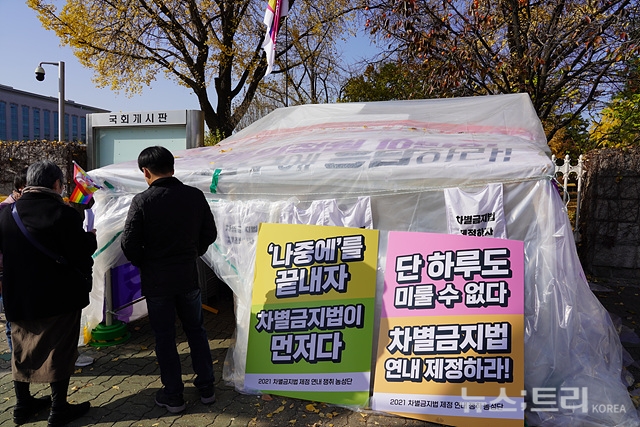 한편 차제연은 이달 9일부터 국회 앞에 천막을 치고 차별금지법제정을 촉구하는 농성을 이어나가고 있다. 차제연은 "더이상 기다리고만 있을 수 없기에 농성을 시작했다"며 "차별금지법 연내 제정까지 농성장을 떠나지 않겠다"는 입장을 밝혔다.