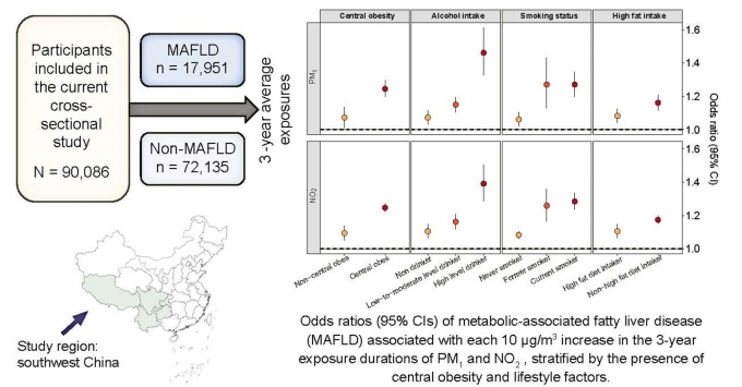 중국 쓰촨대학 등으로 구성된 연구진은 중국 성인 약 9만명을 대상으로 대기오염의 영향에 따른 대대적인 역학조사를 벌인 끝에 이같은 결과를 얻었다. 연구는 2018년부터 2019년까지 중국 남서부에 약 10만명이 등록돼 있는 다민족 코호트(CMEC) 자료를 기반으로 했다. CMEC는 구두면접을 통해 사회인구 통계, 생활습관, 건강이력 등 참가자의 정보를 수집한 다음, 인체측정과 바이오샘플(혈액, 소변, 타액) 및 영상데이터로 평가했다.