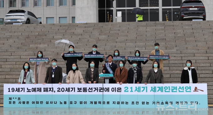 10일 '세계 인권의 날'을 맞아 기본소득당은 서울 여의도 국회본관 앞 야외계단에서 가진 기자회견에서 이같은 주장을 하며, 기본소득을 21세기 인권으로 선언하는 퍼포먼스를 진행했다. 매년 12월 10일은 '세계 인권의 날'로, 1948년 세계인권선언 채택을 기념하는 날이다.