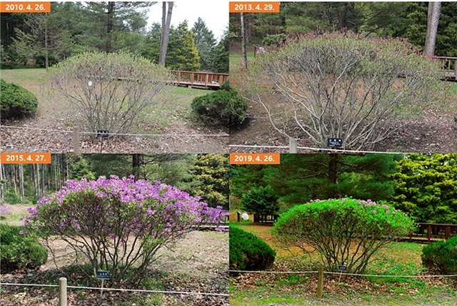 산림청 국립수목원은 서울대학교와 공동으로 지난 10년간 우리나라 산림에 자생하는 식물 25종을 관측한 결과 이같은 계절변화가 관측됐다고 17일 밝혔다.