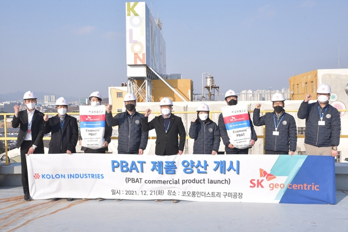 SK지오센트릭과 코오롱인더스트리는 자연에서 미생물에 의해 분해되는 친환경 플라스틱 소재 'PBAT'(Polybuthylene Adipate-co-Terephthalate) 양산을 시작한다고 22일 밝혔다.