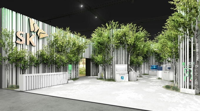 SK 전시관인 '그린 포레스트 파빌리온'(Green Forest Pavilion)은 총 4개의 구역으로 나뉘어 관람객들이 SK의 탄소 감축 노력을 하나의 여정처럼 체험할 수 있도록 구성됐다. 첫번째인 '그린 애비뉴'(Green Avenue)에서는 △청정(Clean) △안전(Safe) △편의(Convenient) △건강(Healthy) 등 4가지 핵심 가치 별로 SK의 반도체·ICT, 전기차 배터리 및 소재, 수소 에너지 영역의 친환경 혁신 기술과 제품이 전시된다.