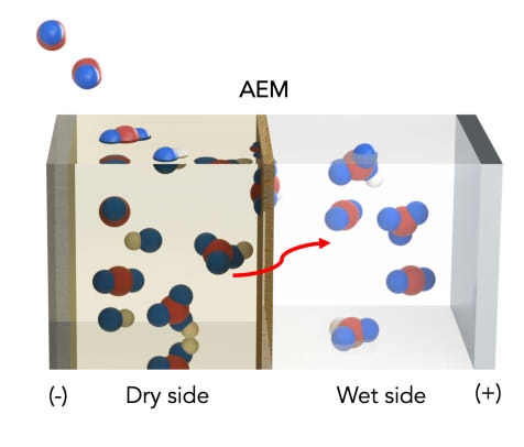 연구진은 기존의 표준 인공잎 시스템을 값싼 재료로 개조했다. 전기충전된 얇은막(멤브레인)으로 건조한 면과 젖은 면을 나눈 것이다. 건조한 쪽에서 유기용매는 이용가능한 이산화탄소에 부착돼 얇은막에 중탄산염 또는 베이킹소다를 생성한다. 중탄산염이 형성됨에 따라, 음전하를 띤 이온들은 얇은막을 가로질러 젖은 면에 있는 수성용액의 양전하를 띤 전극으로 당겨지는 것이다. 그리고 액체용액은 중탄산염을 다시 이산화탄소로 용해시켜 연료나 기타 용도로 활용할 수 있다. 여기에 전하를 이용하면 중탄산염이 얇은막을 가로질러 이동하는 속도를 높인다.