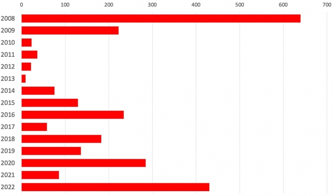 브라질 국립우주연구소(INPE)는 아마존 열대우림 위성관측 자료를 토대로 지난 11일(현지시간) 이같이 밝혔다. 지난 15년간 1월 아마존 열대우림 파괴면적은 평균 171km2 수준이었다. 하지만 2021년 1월 86km2에 불과했던 파괴면적이 올들어 전년대비 5배에 달하는 430km2로 집계되면서 14년만에 정점을 찍었다.