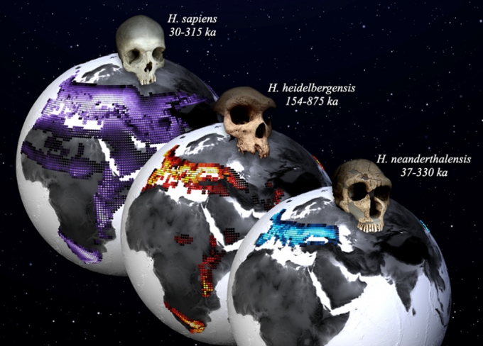 기후 자료와 식생, 화석, 고고학 자료들을 결합해 현대 인류의 조상인 '호미닌'종이 시대별로 살았던 서식지를 추정할 수 있는 시공간 지도도 구축했다. 호미닌은 인간의 조상으로 분류되는 종족이다. 이번 연구에서는 △호모 사피엔스 △호모 네안데르탈렌시스 △호모 하이델베르겐시스 △호모 에렉터스 △호모 에르가스테르와 호모 하빌리스 등의 그룹으로 나눴다.