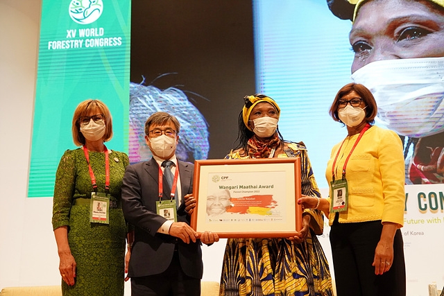 앞서 지난 5일에는 '산림의 공동체관리를 위한 아프리카 여성 네트워크'(REFACOF) 설립자이자 회장인 카메룬의 세실 제벳씨가 '왕가리 마타이상'을 받았다. 제벳 회장은 수십년동안 숲을 보호·복원하고, 서부 및 중앙아프리카 전역의 농촌사회 토착 여성의 권익 증진을 위해 노력한 공로로 수상했다. 왕가리 마타이상은 2004년 노벨평화상을 수상한 케냐 여성 왕가리 마타이의 이름을 따 2012년 제정됐으며, 제벳 회장이 6번째 수상자다.