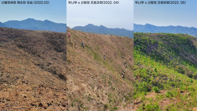 두나무는 캠페인 종료후 지난 5월까지 2개월간 산림청과 연계해 경북지역에 나무 1만260그루를 식재했다. 식재 작업은 탄소흡수와 해당 지역의 식생을 고려해 체계적으로 이뤄졌다. 향후 안동에 위치한 경북소방학교 인근에 캠페인 참여자들의 이름이 새겨진 현판도 설치될 예정이다.