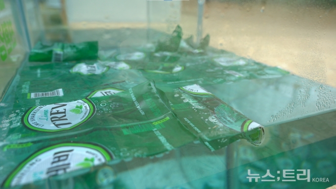 폐플라스틱 수거부터 재활용까지 전 과정을 전시해놓은 '프로젝트 LOOP' 전시관에서는 물에 둥둥 뜨는 라벨지가 눈길을 끌었다. 2020년 12월 25일부터 투명페트병 분리배출제도가 시행되면서 현재 음료병에 붙어있는 라벨지는 대부분 절취선만 뜯으면 분리되는 수축라벨이 사용되고 있다.