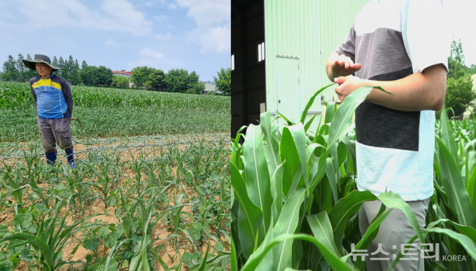 강 씨 역시 비가 오지 않는 바람에 옥수수 파종 시기를 놓쳤다. 그는 "농지의 절반가량은 농사를 포기해야 하는 상황"이라며 "비가 계속 안 오니까 결국 1500만원을 들여 양수기를 샀다"고 했다. 양수기까지 동원해 물을 끌어다 기른 옥수수인데 아직 발치 높이까지밖에 자라지 못했다고 안타까워하는 강 씨는 "보통 이 시기쯤 되면 가슴팍 높이까지 자라야 한다"며 긴 한숨을 내쉬었다.