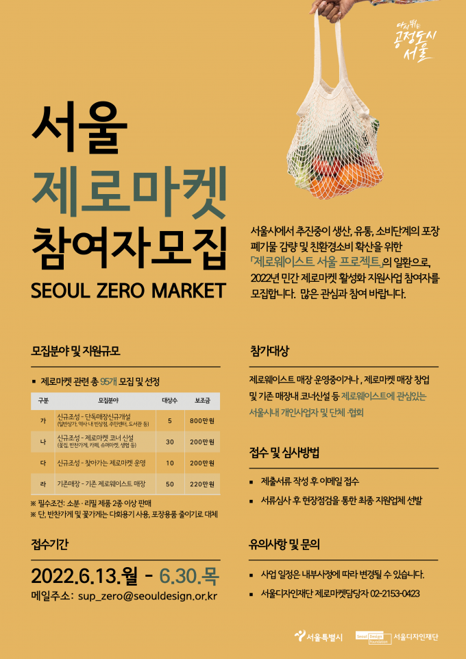 선정된 사업자는 보조금 지원뿐 아니라 제로마켓 사업 개설‧운영을 위한 교육 진행 및 네트워크 구성을 통한 공동구매, 홍보 등 자생력을 키울 수 있도록 서울시가 적극 지원할 계획이다.