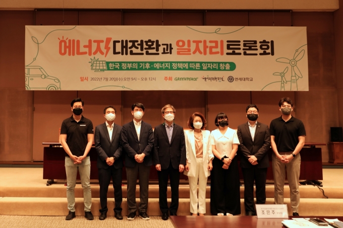 20일 오전 서울 한국프레스센터 국제회의장에서 이같은 내용을 담은 '에너지 대전환과 일자리' 토론회가 진행됐다. 국제환경단체 그린피스, 에너지전환포럼, 연세대 공과대학의 공동주최로 개최된 이번 토론회에서는 기후·에너지전환 정책을 점검하고, 국내 일자리에 미치는 사회·경제적 영향에 대해 논의가 이뤄졌다.