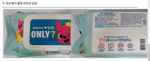 LG생활건강은 가습기 살균제 성분이 검출된 어린이용 물티슈 전 품목을 자진회수하기로 결정했다고 22일 밝혔다.