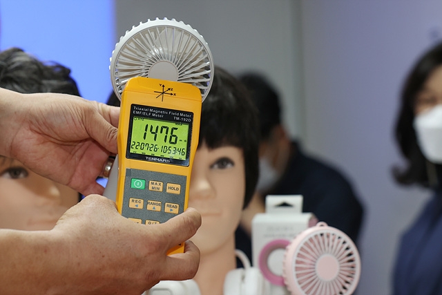 한여름 필수아이템으로 휴대하는 손선풍기가 세계보건기구(WHO) 안전기준보다 최대 322배 높은 전자파가 발생한다는 조사가 나왔다. 목에 걸고 다니는 목선풍기에서 발생하는 전자파도 WHO 기준보다 47배 높았다.