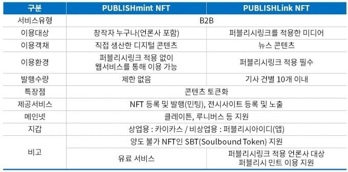 미디어 서비스업체인 퍼블리시는 대체불가토큰(NFT)을 발행할 수 있는 웹서비스 '퍼블리시민트'를 출시했다고 3일 밝혔다. 또 '퍼블리시링크'를 적용한 언론사가 자사 기사를 쉽게 NFT로 발행할 수 있도록 서비스도 고도화했다.