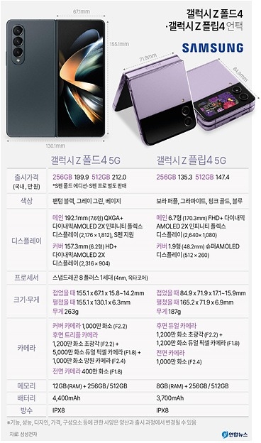 '갤럭시Z 플립4'·'갤럭시Z 폴드4'는 이달 26일 한국, 미국, 유럽을 시작으로 전세계에 순차적으로 출시된다.