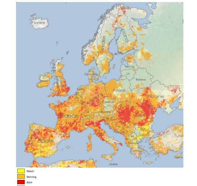 GDO는 지난 10일 유럽 대륙의 47%가 토양 수분이 부족한 '경고' 상태, 17%는 초목이 악영향을 받는 '경계' 상태에 있다고 보고했다.